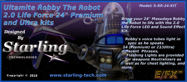 Starling Proudly introduces our Plug-N-Play Ultimate Robby the Robot 2.0 Life Force LED and Sound Effect kit for 24 " Masudaya Robot.